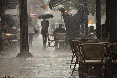 It is fitting that October would start out this way. I was hoping for a rainy day because I had enough of the half-warm, half-cool, humid days of September. I wanted sweaters and jeans and shoes — but no socks until November. That’s a rule.